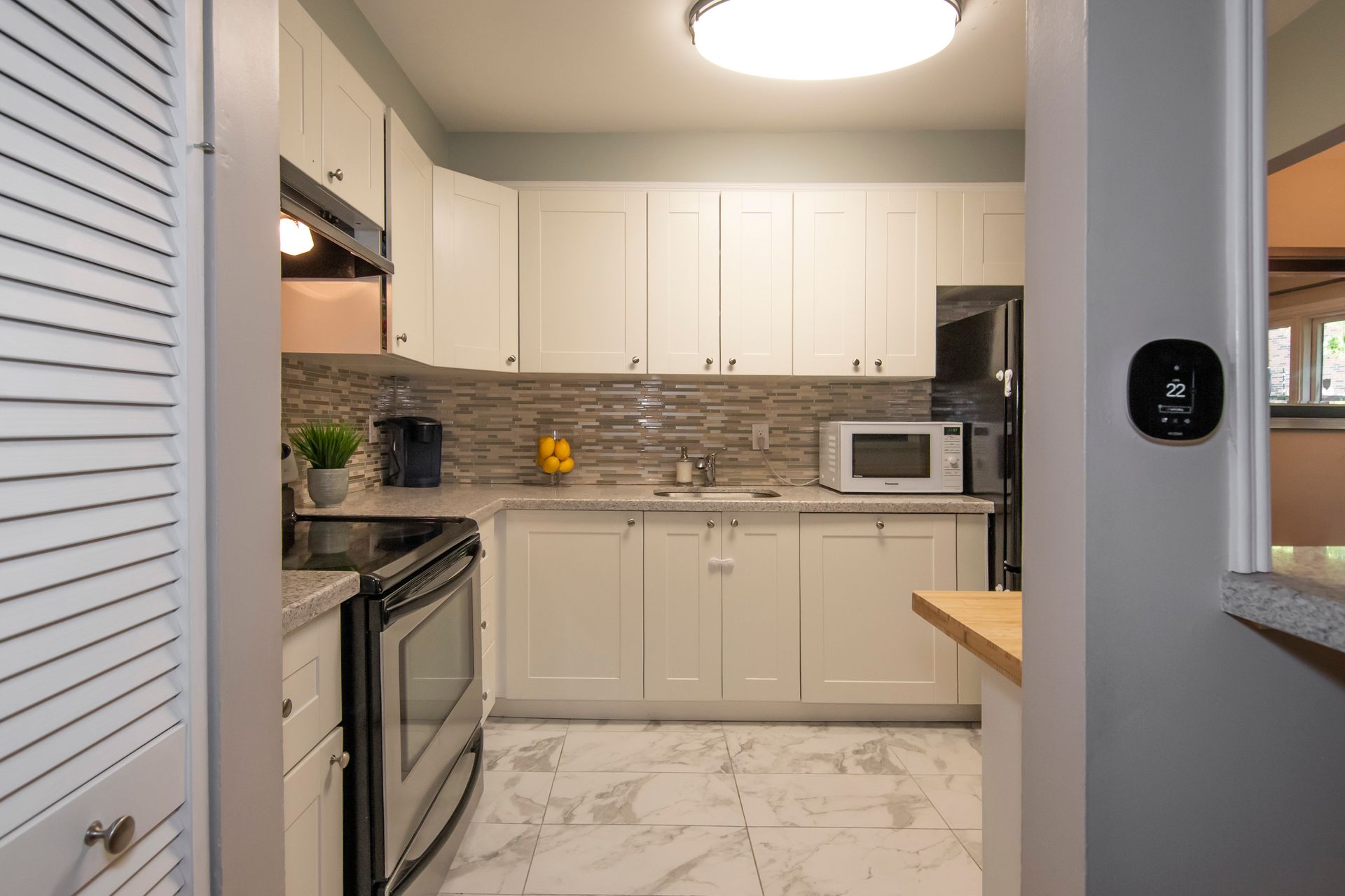 Open concept 3 bedroom townhouse on private cul-de-sac in highly sought Meadowvale. Updates include kitchen with quartz countertops, bathrooms, hardwood flooring, roof, lighting. Additional 2 piece on main floor (rare in complex). Finished basement with potlights offers entertaining options or home office. The family room overlooks the back yard with a walkout to a fully fenced yard. Low Maintenance fee. Close to GO, Shopping, Community centre, Walking trails, Parks. Visitor parking available.